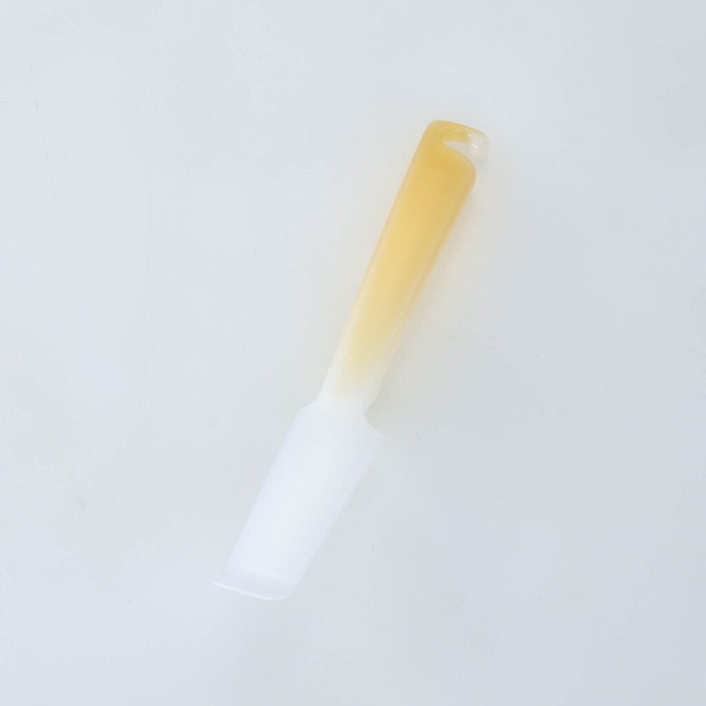 スタンドを付ける事で、仕様途中で置いた場合に垂れたり、先端が下に付かないように設計しました。
