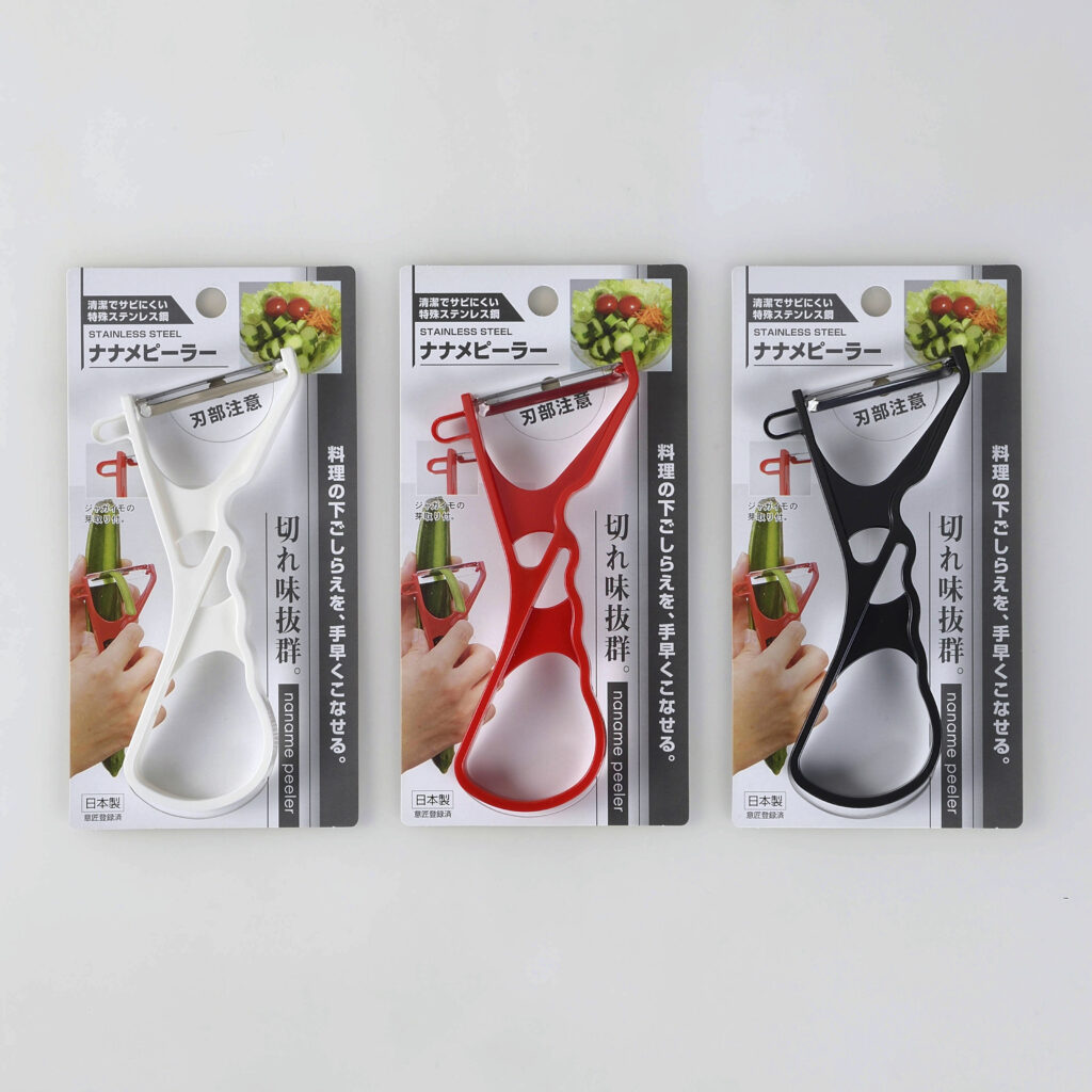 手に持った時、刃が斜めになるようにデザインされたピーラーです。